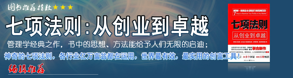 | 在《七項法則》中,印象最深刻的是“逆風險營銷”,這個思路讓我對目前正困惑的一個項目,有豁然開朗的感覺。它能指導人如何更好地創業、管理公司、更好地工作。 |