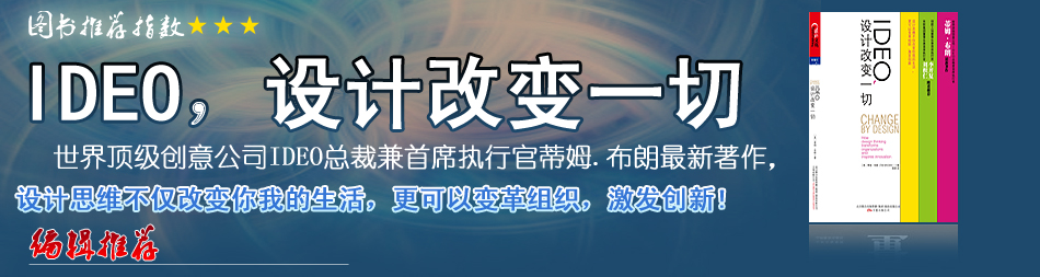在今天的中國,創新是一個炙手可熱的話題,但是從設計的角度來看待和推動創新,對正在積極從“中國制造”向“中國創造”升級的中國經濟來說,還是一個新鮮的、頗具前瞻性而又迫在眉睫的思路。這本書將會告訴中國的讀者,具有創新力的設計思維和方法學將會如何給我們的產品、我們的組織以及我們所在的社會帶來更多的驚喜和競爭力。這是一本值得閱讀和分享的佳作。 |