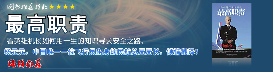 系統缺陷是事故發生的根源 不知是巧合還是主辦方的刻意,《最高職責》譯者楊元元的媒體見面會被安排在北京平安大街平安府賓館的平安閣,所談主題便是“安全”。在這里,楊元元與我們分享了他在翻譯《最高職責》一書過程中的所思、所想與所悟。 2009年1月15日,被譽為傳奇機長的薩倫伯格成功將發動機停駛、失去動力的空客320飛機迫降于哈得孫河上,機上155名乘客和機組人員全部幸免于難,創造了世界航空史奇跡!蹲罡呗氊煛芬粫原了這位英雄機長的這段故事。 “我的飛行經歷跟這本書,跟這個機長很相像!迸c書中主人公同為50年代出生的楊元元曾經也是一名優秀的中國機長,這讓沒有經過英語系統學習的楊元元在這本書的翻譯上傾注了大量心血。 “這個譯者很少見!敝袊馕木挚偩庉,此書審校黃友義如此評價!蹲罡呗氊煛啡珪薪160個注解,都是譯者自己寫上的“我干了一輩子翻譯,譯者可做這個事,也可不做這個事。原著有注解,我去給你翻譯出來。沒有,就沒必要費力給你做這個事情。這種精益求精的精神可見一斑!…[詳細] |