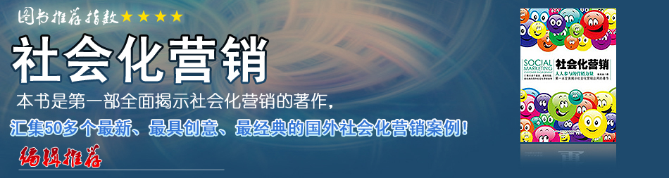 有研究表明,朋友推薦的消費信息比一般品牌廣告信息的有效率高十幾倍。社會化網站發展如火如荼,它為朋友之間推薦消費信息提供了一個便捷渠道。本書全面系統地分析了社會化營銷的起因、現狀與發展趨勢,更涵蓋了諸多充滿創意的精彩案例,這確實是一本不可多得的好書,推薦大家學習。 |