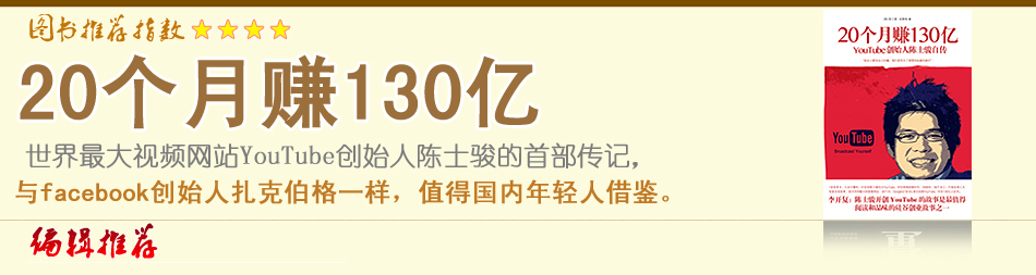 | YouTube聯合創始人陳士駿在書中以樸實親切的口吻講述了他的人生經歷,以及對學業、事業、夢想、財富、生死等的種種感悟。值得一看。 |