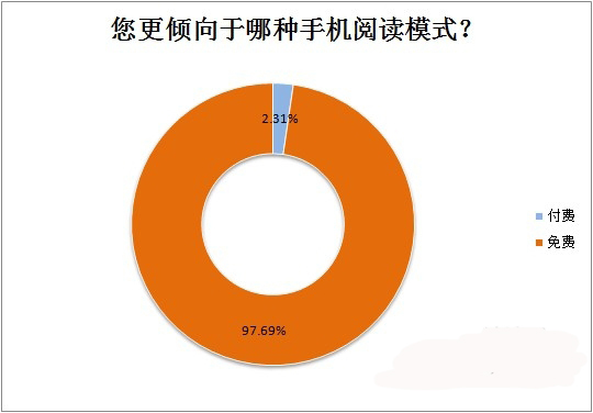從上面圖表中可以看到,對于手機閱讀來說,用戶并沒有形成付費的習慣,97.69%的用戶還是傾向于免費閱讀,因而如何改變用戶的付費習慣,讓用戶能主動的掏錢,是目前閱讀軟件的一個挑戰。