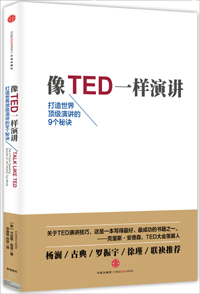 《像TED一樣演講》一書的作者是暢銷書《喬布斯的魔力演講》作者,他在演講培訓方面有多年經驗,在觀看和分析了500場最受歡迎的TED演講視頻,與成功的TED演講者直接對話,以及采訪世界頂尖的神經學家、心理學家和溝通專家的基礎上,他總結出了成就優秀演講的9個秘訣。