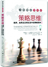 在《策略思維:商界、政界及日常生活中的策略競爭》這本書中,作者首先從10個來自生活不同方面同時也別有生趣的策略故事開始,提供了一些怎樣才能發揮最佳水準的初步概念,讓大家領略了指導策略決策的原理。然而,這僅是全書為數眾多的案例故事的一小部分,從囚徒困境到邊緣政策,從投票策略到討價還價,策略競爭真的隨處可見,競技體育里是如此,商業職場里是如此,在日常生活甚至于政治和思想領域也是如此。