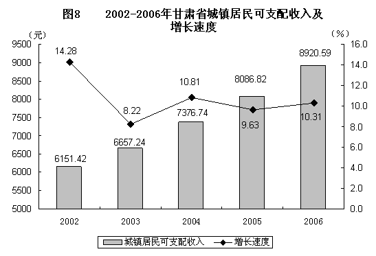 城鄉居民收入增加。全年城鎮居民人均可支配收入8920.59元,比上年增長10.31%,人均工薪收入為7008.40元,增長8.04%,人均轉移性收入為2142.35元,增長16.57%;城鎮居民家庭恩格爾系數為34.53%,比上年下降1.51個百分點。農民人均純收入2134元,增長7.8%,人均外出務工收入為354.7元,增長14.7%,是農民增收的主要因素;農村居民家庭恩格爾系數為46.67%,下降0.53個百分點。年末農村貧困人口139.41萬人,脫貧人口9.13萬人;年末農村低收入人口316.57萬人,解決低收入人口38.75萬人。
