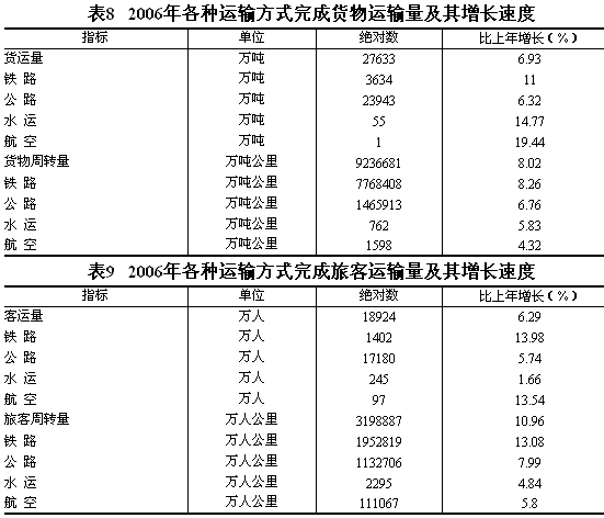 交通運輸和郵電通信業繼續保持穩步增長。全年全省交通運輸和郵電通信業實現增加值169.58億元,比上年增長7.2%。 交通運輸業較快增長。全年各種運輸方式完成貨物周轉量9236681萬噸公里,比上年增長8.02%;旅客周轉量3198887萬人公里,增長10.96%。