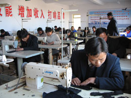 甘肅民樂開展職業培訓,促進勞務輸出。圖為學員在民樂縣南古鎮縫紉機培訓班學習縫紉技術。 新華社記者:呂淑梅