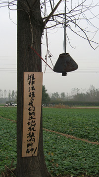 “誰非法侵占我們的土地就敲響此鐘!”面對越來越多非法圈地者,前不久,河南省中牟縣白沙鎮白墳村村民在本村耕地旁的大樹上立了一口老鐘,以便隨時召集村民“抵抗”非法占地者。新華社記者:單純剛