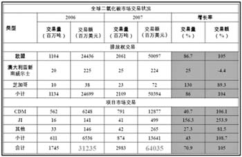 ●聯合國和世界銀行預測,2012年全球碳交易市場容量為1400億歐元(約合1900億美元),全球碳交易市場容量將超過石油市場,成為世界第一大交易市場,而碳排放額度也將取代石油成為世界第一大商品。 ●世界各國的金融機構,包括商業銀行、投資銀行、保險機構、風險投資、基金等紛紛涉足碳金融領域。全球碳金融競爭的戰略實質就是參與各方希望通過發展碳金融,掌握未來碳交易的全球定價權。