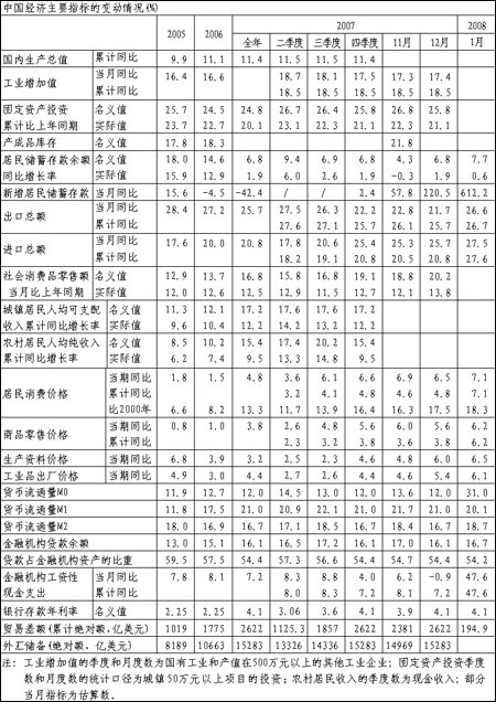 嚴重的南方雪災對中國經濟運行的影響到底有多大?這是一個急需回答的問題,但卻很難根據1月份的宏觀數據作深入分析。1月份,由于春節因素的影響,大多數指標的波動較大,雪災的影響和春節因素的影響交織在一起,無法把雪災的影響分離出來。1月份,三大類核心指標沒有數據可用,固定資產投資未統計,工業產出和國內貿易的數據未公布,這使得分析更受限制。從有限的公布數據看,進出口總額增長速度較快,物價漲幅增大,金融運行狀況基本穩定,但廣義貨幣增長幅度又有所加快。雖然雪災使我國遭受了較大損失,并且具體影響還難以估計,但有一點可以肯定,雪災所產生的沖擊是暫時的,不會改變我國經濟運行的基本面,經濟基本走勢不會變,總量調控政策也沒有必要進行調整。