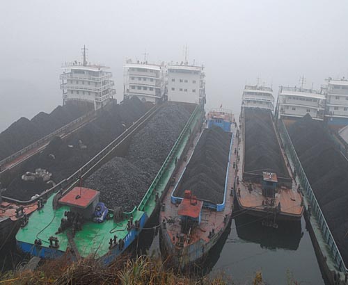 濃霧籠罩三峽庫區 3月13日上午,貨運船舶在湖北省秭歸縣蘭陵溪村等待霧散后過閘。 受今春以來首場濃霧影響,三峽雙線五級船閘和下游的葛洲壩船閘均中斷通航超過10小時,造成三峽庫區內部分船舶滯留。新華社發(鄭家裕