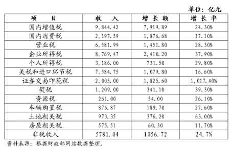 考慮價格因素的影響,財政收入的增量中還存在著價格再分配的部分,具體分三種情況。一是通貨膨脹稅部分,是由通過膨脹這種客觀的貨幣現象導致。二是產品比價變動部分,當出現結構性物價上漲時,財源分布就會改變,可能導致財政收入增加。三是稅制結構受物價影響部分,對于采取比例稅率的流轉稅來說,稅收收入的增長率等同于物價上漲率,財政收入只有名義增長,而不會有實際增長;對于采取累進稅率的所得稅來說,物價上漲會提升稅率檔次,財政收入會出現名義、實際雙增長。 2007年財政收入高速增長受價格因素的影響很大。當年我國居民消費價格比上年上漲4.8%,由于沒有出現為彌補赤字發行貨幣而產生的通貨膨脹,所以2007年主要是出現了后兩種情況。首先,2007年我國出現了結構性物價上漲,能源、原材料、食品、房地產價格上漲較快,其中,食品價格上漲12.3%;原材料、燃料、動力購進價格上漲4.4%;農產品生產價格上漲18.5%;70個大中城市房屋銷售價格上漲7.6%,從而拉動相關稅收收入大幅增加。其次,我國現行稅制為以流轉稅和所得稅為主體的雙主體稅制,在物價上漲的情況下實現了財政收入名義增長和實際增長,由于流轉稅的比重較高,所以受2007年價格因素影響的財政收入增長絕大部分是名義增長。
