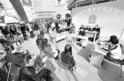 2008年3月15日,南京市秦淮區人民法院保護消費者權益法庭在南京街頭開設“模擬法庭”,演示“啤酒瓶爆炸導致人身傷害”等典型消費維權案例的審理過程,指導消費者依法維權。新華社記者孫參