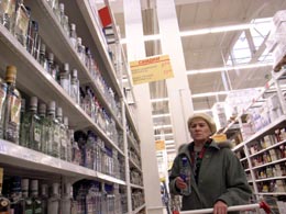 10月31日,一名消費者在俄羅斯首都莫斯科一家超市選購酒。俄羅斯各地自2006年8月以來一再發生假酒中毒事件,目前中毒人數仍在不斷增加,其中已有118人死亡。