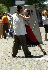 在有阿根廷探戈發祥地之稱的布宜諾斯艾利斯市博卡老港區,一名當地探戈舞女在與外國旅游者拍攝紀念照。 12月的阿根廷,風和日麗,享譽世界的探戈舞更吸引了遠道而來的大批歐美度假者。首都布宜諾斯艾利斯市的各等級酒店已經預定爆滿,入住率達到90%以上。