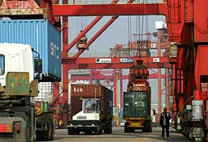 繁忙的上?诎。經濟參考報資料照片 | 北京大學中國國民經濟核算與經濟增長研究中心3日公布的《中國經濟增長報告(2007)——和諧社會與可持續發展》提出,進入本世紀以來,隨著中國經濟增長和外向型經濟的發展,中國在國際貿易中的份額不斷擴大,加上歐盟的影響日益顯著,在國際經濟秩序中,目前已經形成了以美國、歐盟、中國和日本為主導的新的經濟格局。 報告通過對2000年至2005年世界貿易中10個主要國家和地區的進出口排序情況進行對比分析后指出,除了中國大陸以外,5年來能列入前10名的都屬于發達國家或地區,人均國民生產總值(GDP)都在兩萬美元以上。正是由于中國對外貿易的迅速發展,才打破了由發達國家或地區主宰世界貿易的格局。2000年,中國在全球貿易中的排名第七,到2005年已經超過日本,排名世界第三。隨著加速工業化的進程和外向型經濟的迅速發展,中國作為世界上新的制造業中心的地位已經確立。 報告研究表明,2005年,德國已經超過美國成為世界第一出口大國,占全球出口貿易的比重上升為9.3%,比中國的7.3%高出兩個百分點。美國的進出口總額仍在世界上占最大比重(12.4%),但影響其規模的主要因素是巨額貿易逆差,其進口貿易占全球的比重為16.1%,出口僅占8.7%。世界10大主要出口國家和地區占全球貿易的比重達50%以上,其中大多數為歐洲國家。歐洲的經濟一體化進程,使其在世界貿易中的影響明顯擴大。數據顯示,目前以美國、歐盟、中國和日本為主導的新的世界經濟格局已經形成。 報告指出,改革開放以來,中國對外貿易的發展顯著快于經濟增長,中國的進出口總額占GDP的比重不斷提高,從1978年的9.74%、2001年的38.47%,提高到2005年的63.86%,平均每年增加約兩個百分點。外貿依存度的增加,說明了中國對外貿易總量的增長速度快于GDP的增長,由此擴大了對外貿易對中國經濟活動的影響。 報告分析說,中國外貿依存度的提高是和加速的工業化進程及加入WTO相聯系的,反映了在全球經濟一體化的背景下,中國經濟和世界經濟更加深入的融合。從橫向比較看,中國的外貿依存度明顯的高于美國和日本,也高于歐洲的英國、法國和意大利等國家,與世界第二貿易大國德國及西班牙、加拿大、韓國等相似,所以并不能簡單地從外貿依存度的具體數值上判斷中國的外向型經濟規模是否適度。但是通過對中國外貿依存度的動態比較分析,我國至少應重視兩方面的問題:一是作為大國經濟,這么高的依存度對中國的經濟安全和可持續發展是否會產生一定的負面影響。雖然一些發達或新興工業化國家和地區的外貿依存度也比較高,但它們的外貿依存度通常是比較穩定的,而中國的外貿依存度在近年來卻是迅速變化的。二是隨著外貿依存度的變化,應采取一些防范風險的有效措施。