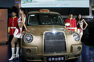 | 英國TX4黑色經典出租車曾在上海國際車展上亮相。該車與寶馬、勞斯萊斯等世界名牌車型齊名。本報資料照片 | 本報考文垂電
