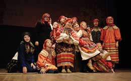 中俄家庭聯歡演出2日在莫斯科維什涅夫斯卡婭歌劇中心舉行,該演出是第四屆中俄婦女文化周的一項重要內容,來自中俄兩國的10多個家庭表演各具特色的節目。來自梁贊地區斯科賓市的“極限”家庭組合,表演了短劇《俄羅斯紅色角落》片段,充分展示了民族服裝特色。