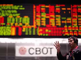 | 9日,在美國芝加哥期貨交易所(CBOT),一名交易員用手勢向同事傳遞信息。新華社/路透 | 本報芝加哥電