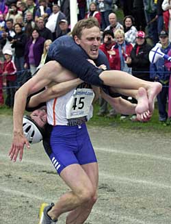 新華社/路透 | 地廣人稀的芬蘭夏季短促。為使人們聚集在一起度過快樂時光,從1992年起,芬蘭小鎮松卡耶爾維開始舉辦“背老婆”比賽。今年的比賽于本月7日舉行,愛沙尼亞選手奪得冠軍。 今年是第12屆“背老婆”比賽,共有來自12個國家的44對夫婦報名參賽。在往屆比賽中,愛沙尼亞選手一向優勢明顯,今年他們再次包攬了比賽的前兩名,馬迪斯·烏索格與妻子因加·克勞松以61.7秒的成績最先跑到終點,他們的獎品是一臺等離子電視機,以及與冠軍妻子體重相等的49公斤啤酒。 顧名思義,“背老婆”比賽的方法即是丈夫背著老婆或女伴賽跑,賽程共250米,選手在奔跑中要跨越一個水池和一些圍欄障礙物。最令人大開眼界的是,雖然背“老婆”的方式沒有固定要求,但是很多人采用了一種奇怪的標志性“愛沙尼亞式背法”,即女伴一路頭朝下用雙腿掛住男選手的脖子。這種背法雖然不夠雅觀,但效果甚佳。 今年的冠軍丈夫馬迪斯·烏索格是上屆比賽冠軍馬戈·烏索格的兄弟,馬迪斯賽后對路透社記者說:“贏得比賽我非常興奮,這是我第五次參賽,第二次奪冠,而且是第一次戰勝我的兄弟! “這個比賽聽起來很荒唐,”來自美國俄亥俄州的蘇珊·拉佛蒂和丈夫一起參加了今年的比賽,并獲得第33名!暗撬某霈F有很多歷史淵源呢! 活動主辦方主席韋科·泰爾沃寧介紹說,“背老婆”的傳統可以追溯到200多年前,當時,有一個名叫羅斯沃-龍凱寧的強盜頭目,為挑選最強壯的手下,他讓申請者背著重物穿越森林,速度最快的人才有資格入選。 “傳說這些強盜在洗劫村落時還會擄走婦女,”泰爾沃寧接著打趣說,“還聽說女人們很樂意被搶走! 十幾年前,一些芬蘭人希望通過紀念這些古老的傳說保留本國傳統文化,于是從1992年開始,“背老婆”比賽重現江湖。 為推廣此項賽事,芬蘭主辦方還專門設立網站,輔導人們如何提高“背老婆”技能。比賽很快傳播開來,并獲得世界上其他地區人們的喜愛。 依據比賽規則,“老婆”除了真正的妻子,也可以是做搭檔的其他女伴,但不管是誰,她們的體重必須在48.5公斤以上,否則女選手還需另背一個沙包補齊重量。如果在奔跑過程中女伴摔到地上,那么這組選手的成績將被加上15秒。然而,比賽規則中最重要的,也是惟一標成粗體的一條是“所有參賽者要玩得開心”。 美國參賽者蘇珊和丈夫詹姆斯說:“我們來這里的目的就是為了開心,現在不僅我們非?鞓,我們的孩子和在場的所有人都非常高興! 據統計,每年有一萬多游客因“背老婆”比賽來到松卡耶爾維小鎮,遠遠超過小鎮人口。 “你可以在這里感受到世界上最美好的時光,”泰爾沃寧說,“當全世界被暴力新聞充斥的時候,我們希望在這里營造一個歡樂之都! |