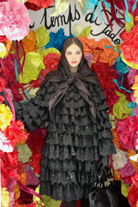 從服裝材質和造型來看,絲綢和魚尾裙在凸顯女性魅力方面的功能讓其成為眾多設計師的設計重點,珍珠、亮片、蕾絲花邊、刺繡的分量也一如從前。不過,在服裝展示舞臺的選擇上,則充分體現了“五花八門”的特點——這也是服裝周的另一看點。 7月3日晚,來自芬蘭的巴黎時裝設計師賈絲明·桑塔寧在游弋在塞納河上的游船上舉行了秋冬時裝發布會。晚上9時許,陣雨過后的巴黎露出了晴朗的藍天。歡快的音樂聲中,游船駛離河岸,緩緩前行。一陣閃光燈亮過,模特們在游船上層臨時鋪設的露天T型臺上開始了展示。職業裝、小禮服、晚禮服相繼“登場”,塞納河岸與橋頭的游人樂得當起了臨時觀眾,免費觀看這場精彩的時裝秀。不過,模特們可吃了不少“苦頭”,她們穿著尖細的高跟鞋邁著臺步,還得隨時防止因游船的運動而傾斜或跌倒。 7月4日,高級時裝設計師弗蘭克·索爾比埃向觀眾展示了其充滿懷舊色彩的設計。一個長方形庭院的中央用地毯鋪出一個長條舞臺,一個穿輪滑鞋的女精靈,一個捧書細閱的男芭蕾舞者,一個雜耍演員,一個乖巧女童,四個人在舞臺上隨性演出。舞臺兩旁搭起了一座座白色小木屋,仿佛幀幀精美像框,框住了一個個精美如瓷娃娃的模特。