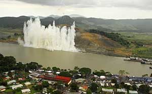 | 3日,在巴拿馬城附近的帕拉伊索地區,巴拿馬運河擴建中的首個工程項目成功進行了爆破,它標志著運河擴建工程正式啟動。新華社發 | 本報巴拿馬城電