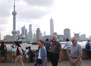 中國的和平崛起引起全球矚目,圖為來自加拿大的游客在中國上海外灘參觀。本報資料圖片 | 本報日內瓦電