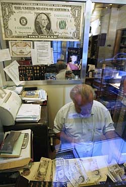 | 圖為法國巴黎一家貨幣兌換處,放大的一美元紙幣樣張貼在墻上。本報資料照片 | 本月21日,紐約匯市美元匯率再度走低,其中美元對歐元和瑞士法郎比價創下歷史新低。市場分析人士認為,美元頹勢既是美國經濟因次貸危機而前景不明的反映,同時也是美國政府近年來放棄強勢美元政策的必然結果。從目前看,美元下跌趨勢近期難以扭轉。 市場分析人士指出,今年8月份以來,美元持續貶值,最主要的原因在于,隨著美國次貸危機全面爆發,美國經濟增長面臨的下行風險增加,而美國聯邦儲備委員會連續兩次降息也對美元構成了打壓。 根據美聯儲公布的最新預測,2008年美國經濟增長率預計為1.8%至2.5%,低于此前預測的2.5%至2.75%。美聯儲表示,促使其下調2008年經濟增速預測的因素包括信貸緊縮、住房數據比預期的更疲軟以及油價上漲等。 美國匹茲堡國民商業銀行分析師約翰·西爾維婭認為,美聯儲在調低經濟增速預測的同時認為通貨膨脹壓力將有所緩解,預示美聯儲今后有可能進一步降息以刺激經濟增長,這“降低了美元對外國投資者的吸引力”。 為避免次貸危機導致美國經濟陷入衰退,美聯儲今年9月份和10月份分別將聯邦基金利率即商業銀行間隔夜拆借利率下調了0.5個和0.25個百分點,降至目前的4.50%。此舉雖然有利于刺激美國經濟增長,但卻對美元匯率構成了打壓。 市場分析人士還指出,美元對其他西方主要貨幣呈現全面頹勢,同樣與美國政府近年來實際上已經放棄強勢美元政策密切相關。 雖然美國政府公開表示,將繼續推行強勢美元政策,但實際上,本屆美國政府并未就此采取任何實質性干預措施,反而多次強調美元匯率應由公開的市場機制決定。而在目前市場條件下,由于美國經濟增長前景不明朗,加上美聯儲有可能再次降息,而且美國還面臨巨額貿易赤字等問題,美元頹勢近期內將難以逆轉。 鑒于美元在全球金融體系中的重要地位,最近幾個月美元持續貶值已對全球市場產生了重要影響。僅以原油和黃金兩種商品為例,由于其交易以美元計價,美元大幅貶值直接推動了這兩種商品價格走高。 從貿易和宏觀經濟層面看,對美國而言,雖然美元貶值有助于其擴大出口,但也會抬高其進口產品價格,從而會增加其通貨膨脹壓力加大的風險。對美國的主要貿易伙伴而言,由于本幣對美元升值,勢必影響其對美國的出口。最近,日元對美元升值,成為影響日本東京股市下跌的因素之一。就歐盟而言,法國等成員國已多次抱怨,歐元對美元升值,已嚴重影響了它們的出口產品競爭力,要求歐盟采取適當措施進行干預。 關于美元匯率今后走勢,三菱東京日聯銀行倫敦分公司貨幣市場分析師李·哈德曼說,考慮到自10月底以來,美國金融市場因次貸危機情況顯著惡化,美聯儲在12月份舉行的貨幣政策決策例會上再次降息是“非,F實”的,因此短期內美元匯率將面臨進一步下跌的壓力。 |