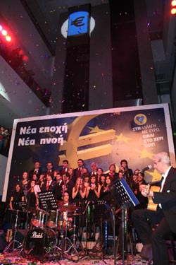 | 2008年1月1日,在塞浦路斯首都尼科西亞,人們舉行儀式慶祝塞浦路斯加入歐元區。當日,塞浦路斯正式加入歐元區。歐盟在2007年10月批準塞浦路斯和馬耳他從2008年1月1日開始使用歐元,歐元區由先前的13國擴大為15國。新華社記者