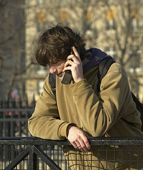 | 圖為一青年人在巴黎塞納河畔打手機。本報資料照片 |