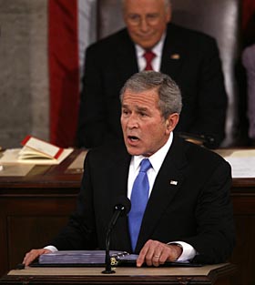 | 28日,美國總統布什在華盛頓的美國國會大廈發表2008年國情咨文講話。新華社/路透 | 刺激經濟方案亟須出爐