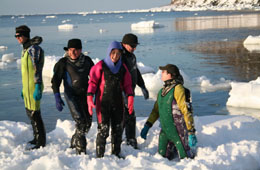 日本北海道東北部鄂霍次克海沿岸地區利用“浮冰”這一得天獨厚的自然條件,開發了別具特色的“破冰行舟”和“冰上行走”旅游項目,吸引了眾多日本國內外游客。 鄂霍次克海是地球上緯度最低的能凍冰的海。每年冬天,當海水溫度低于零下1.8攝氏度,海上就會自北向南形成針狀和板狀的冰晶。冰晶融合在一起浮在海面上,連成一張張薄薄的冰板。這些冰板隨著海浪搖蕩,互相碰撞疊加,最終形成連綿不絕的白色“冰原”。 位于鄂霍次克海沿岸的網走市利用這一天然的浮冰景觀,開發了破冰船“極光號”之旅。每年1月20日至3月31日間,破冰船都會定期航行在飄滿浮冰的海面,帶領游客體會在白色冰原上破冰前行的新鮮感覺。 為了承受與堅冰碰撞時的巨大沖擊,“極光”的船頭使用高強度鋼板,鋼板厚度是普通游輪的1.5至3倍。船頭與水平面的夾角達到了30度,可以順利地“騎”上冰面,利用自身重量粉碎冰塊。 “極光”的經營者告訴記者,自從開發了這一旅游項目之后,來體驗“破冰之旅”的游客年年攀升,多的時候每年能夠接待20萬人,其中,外國游客約占3成左右,以中國臺灣、中國香港和新加坡人居多,中國內地游客也在逐年增長。 除了破冰船之旅外,“冰上行走”也獨具特色。只要在教練指導下,穿上類似于潛水服的特殊服裝,人人都可以在白色的浮冰上“閑庭信步”,也可以爬上重重疊疊的小冰山,極目遠眺一望無際的冰原,光線好的時候甚至能夠看到真正的冰藍色世界。 “冰上行走”時游客完全無需擔心掉進冰冷的海水中。因為5毫米厚的連體潛水服是有浮力的,而且有很強的保溫性能,即使不小心落水,也不會有生命危險!氨闲凶摺1個半小時的花費是5000日元(約合340元人民幣),包括指導費和服裝租賃等費用。 當地最有名的“冰上行走”教練藤崎達也對記者說,他從事“冰上行走”活動并非出于經濟利益考慮。十幾年前,他放棄工作離開東京,來到北海道定居,就是因為熱愛這里的大自然。后來,他與一批志同道合的海上運動愛好者一起開發了這種專用服裝,幫助人們實現漫步冰原的愿望,領略白色冰雪世界的魅力。