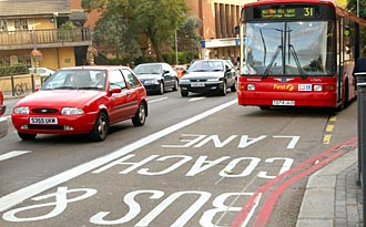 | 圖為在英國倫敦市中心,一輛巴士和其他汽車各行其道。新華社發 | 首爾:公交車開在路中央