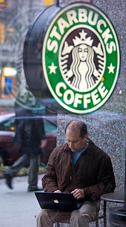 | 一名男子坐在美國首都華盛頓一家關閉的星巴克咖啡店外。新華社/法新 | 美國聯邦儲備委員會(美聯儲)前后兩任主席本月異口同聲地說,美國實體經濟在次貸危機陰影下健康發展。 現任主席伯南克月初出席國會聽證會時說,除了銀行和證券業,美國公司的資產負債表是“健康”的,這對整體經濟形勢來說是個“積極因素”。前主席格林斯潘隨后說,與金融業不同的是,至少目前美國仍然有看上去相當不錯的實體經濟。 美國各大公司近期公布了一季度財報,似乎驗證了上述判斷的正確性。據布朗兄弟哈里曼公司的統計數據,在標準普爾500大企業中,約20%的公司已公布財報,如果剔除受次貸危機影響嚴重的金融類公司,其他公司獲利增長8.2%。