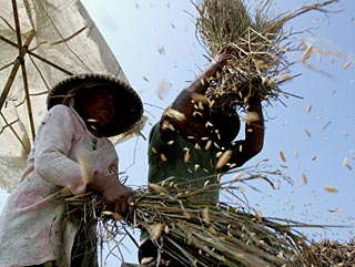| 4日,在印度尼西亞西爪哇省,兩名農民在打谷脫粒。由于米價飆升,東南亞國家聯盟10國貿易部長3日在印度尼西亞巴厘島達成共識,同意就大米市場展開合作。包括印度、越南、印度尼西亞和巴西在內的一些國家已對糧食出口進行限制,以確保國內供應,抑制通貨膨脹。新華社/路透 | 2日,作為全球最大大米出口國之一的泰國政府拋出一項提議,打算聯合其他4個出口大米的東盟成員國成立類似石油輸出國組織(OPEC)的“大米輸出國組織”(OREC),以確保自身利益。這一提議引發極大的爭議。 泰國政府發言人蘇觸扎2日說,泰國商業部長明旺·桑素旺將同老撾、緬甸、柬埔寨和越南4國的商業部長會談,商討建立一個類似歐佩克(OPEC)的聯合組織,以獲得國際大米價格的更大控制權。 “雖然我們是世界糧食中心,卻對糧價方面沒什么影響力,”美聯社援引蘇觸扎的話說,“石油價格大幅上漲,我們進口昂貴的石油,卻非常低廉地出售大米,這對我們不公平,損害我們的貿易平衡! 老撾外交部發言人永·占塔蘭西2日說,老撾政府會“認真考慮”泰國提議,因為那會賦予5國“談判權力”。 柬埔寨歡迎這一提議,認為在當前全球糧食危機的情況下,“有必要”建立這樣的組織!巴ㄟ^形成一個聯合組織,我們能夠幫助避免價格戰,就糧食安全交流信息!奔砥艺l言人、新聞大臣喬卡納里說。 蘇觸扎證實,泰國總理沙馬·順達衛4月30日同緬甸總理登盛會晤時提出上述想法。沙馬說,緬甸方面予以支持。越南官員說,正在研究這一提議,可能予以支持。 與大米出口國的積極響應相反,同屬東盟的全球最大大米進口國之一的菲律賓3日對泰國的提議感到擔憂,認為這一提議在全球糧食危機中不能解決困難,反而會帶來更大難題。 菲參議院多數黨團領袖弗朗西斯·潘希利南說,所謂“大米輸出國組織”“與窮人為敵,只會加劇而不會緩解饑餓和貧窮”,“出于人道主義,他們必須三思而行”。 菲參議院農業委員會主席埃德加多·安加拉擔心,少數幾個糧食生產國控制某種糧食,可能使消費者買不起這種糧食。 參議院貿易和商業委員會主席曼紐爾·羅哈斯呼吁菲律賓外交部趕在泰國提議落實前,正式提議召開東盟領導人會議,討論糧食安全問題!皷|盟必須作為一個地區集團共同謀求貿易權利,成員國應保持東盟精神!绷_哈斯說。 對泰國提議持懷疑態度的人士認為,醞釀中的“大米輸出國組織”要想取得像歐佩克(OPEC)那樣的地位并不容易,因為控制大米供應量的難度不小。 泰國大米出口聯合會主席奧帕斯旺斯認為,“大米輸出國組織”把巴基斯坦和印度這樣的大米生產大國排除在外,而且難以控制農民生產行為,因此很難左右國際市場。 亞洲開發銀行行長黑田東彥3日在馬德里出席亞行年會前夕接受媒體提問時說,農產品貿易應當以市場為指針,成立所謂的“大米輸出國組織”不僅會損害大米進口國的利益,也無益于大米出口國。 他說,不應簡單地將亞洲糧食價格大幅上漲歸咎于供應不足,迄今為止糧食供給并沒有出現明顯短缺。不同的統計結果均顯示,大部分農作物供應實際上是在穩步增長,就亞洲整體而言,糧食供應足以滿足需求。從中長期來看,提高農業生產率才是應對目前糧價上漲最為重要的策略。