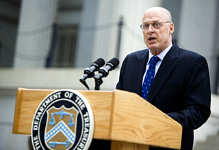 | 13日,在美國華盛頓,美國財政部長亨利·保爾森向媒體發表聲明,美國財政部和聯邦儲備委員會宣布出手救助陷于資金困境的美國最大兩家住房抵押貸款融資機構——房利美和房地美。新華社/路透 | 美國財政部長亨利·保爾森20日連趕兩場電視訪談節目,談論美國經濟發展前景、金融市場現狀和近來陷入麻煩的住房抵押貸款融資機構房利美和房地美。 保爾森在訪談中說,美國經濟的“艱難時光”仍將持續數月。
