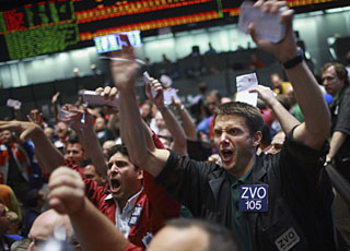 | 圖為美國芝加哥商品交易所交易場景。新華社/路透 | 國際原油期貨價格11日延續近期頹勢,盤中創下14周以來最低紀錄。同樣受全球經濟下滑及需求預期降低等悲觀因素影響,黃金、大豆等初級產品期貨價格震蕩走低,多數已經跌入“熊市”。