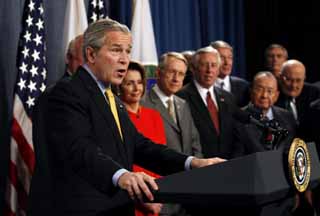 2007年12月19日,美國總統布什在華盛頓舉行的新能源法案簽字儀式上講話。布什當日簽署了新能源法案。根據新能源法案,到2020年,美國汽車工業必須使汽車油耗比目前降低40%,使汽車達到平均每加侖(美制1加侖約合3.7854升)燃油行駛35英里(1英里合1.6093公里)的水平。這是自1975年以來美國國會首次通過立法提高汽車油耗標準。新華社/路透 | 隨著油價持續走高,全球面臨能源危機,加上溫室氣體排放造成的全球變暖趨勢不斷加劇,各國都在尋找可再生能源替代傳統能源。在可再生能源的研發上,美國各界在七大方面采取措施,力求使美國在現階段和可預見的未來在可替代能源研發、利用方面處于世界領先地位。