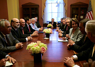 | 18日,在美國首都華盛頓,美國財政部長保爾森(左三)、美聯儲主席伯南克(左二)與美國國會領導人舉行閉門會談。新華社/路透 | 華爾街日前的“金融海嘯”讓美國金融體系重新洗牌,也迫使美國政府迅速推出新的救援計劃,擬動用7000億美元的資金購買金融機構不良資產,這也是上世紀30年代經濟大蕭條以來美國政府最龐大的救援計劃。 美國政府此舉也是迫不得已。美國素來標榜自己是自由市場經濟,但隨著次貸危機向縱深發展,房利美、房地美、雷曼兄弟、美國國際集團等眾多金融巨頭倒下,市場信心瀕于崩潰。 據美國官員透露,美國財政部過去數周一直在研究這項計劃,但因顧慮可能遭到外界強烈反對一直秘而不宣;但由于近來華爾街局勢急轉直下,為防范危機進一步蔓延,政府已別無選擇。美國總統布什解釋說,他最初也希望讓市場發揮作用,但“當認識到問題正變得多么嚴重時”,他決定必須采取這一措施,否則美國將為此付出更大代價。 在公布金融救援計劃前,美國財政部長保爾森、美國聯邦儲備委員會主席伯南克和布什進行了緊急磋商;保爾森等官員隨后又拜會多位資深議員,爭取到了他們的支持。 保爾森的計劃核心是為華爾街“止血”——政府投入7000億美元,低價購買金融機構的住房和商業抵押貸款等不良資產,待市場初步穩定后,政府再將這些資產出售給市場。保爾森說,這些不良資產是造成目前金融危機的癥結所在。 曾參與1979年克萊斯勒公司救助計劃的美國前政府高級官員羅格·阿爾特曼也表示,盡管目前金融環境艱險,但“經過這一過渡期后,政府最終完全有可能獲得償還”。 金融救援計劃極大地振奮了投資者的信心,也推動全球股市大幅反彈。但大量財政開支,無疑會使美國下屆政府背上沉重的債務包袱,加重美國的財政困難。美國參議員理查德·謝爾比認為,政府救市總耗資可能達到1萬億美元。一旦政府出售資產不能盈利,巨額虧損將是納稅人買單?▋然-梅隆大學政治經濟學學者艾倫·梅爾策認為,當前的金融危機并非納稅人的問題,而保爾森提出的救援計劃要耗費數千億美元資金,“這是最糟糕的社會民主”。 一些國會議員則認為,美國政府現在是為華爾街大亨買單,卻對普通美國人的損失視而不見,這種忽視“道德風險”的行為將加劇市場的投機風險,為新的危機埋下隱患。眾議院金融服務業委員會主席巴尼·弗蘭克說,該計劃只讓一些金融從業者直接受益,“我們應該討論一下那些非私有領域的民眾的受益情況”。 次貸危機爆發一年來,美國政府的數次救市行為未能根本扭轉市場走勢,而今后的救援計劃能否見效還有待觀察,美國經濟仍存在很大不確定性。不過,從積極角度看,如果美國政府隨后舉措得當,華爾街也有可能在劇烈動蕩中迎來“轉折點”。 |