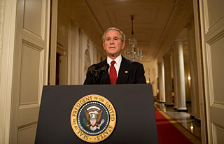 | 圖為24日,美國總統布什在華盛頓白宮發表電視講話后接受媒體拍照。新華社/法新 | 美國總統布什24日發表全國電視講話時,運用強烈的措辭敦促國會盡快通過政府提出的巨額金融救援計劃,他直言“我們的整體經濟正處于危機之中”。 布什當天的電視講話除了向美國公眾解釋這一上世紀30年代美國經濟大蕭條以來最大的救市方案外,更重要的是向國會施壓,敦促其盡快出臺各方達成共識的最終方案。 布什指出,這一計劃有助于政府購入金融機構不良資產,從而增加信貸市場流動性,進而刺激經濟復蘇。他強調,該計劃旨在幫助整個國家,而不是單個公司。 在布什發表電視講話之前,美國兩黨總統候選人奧巴馬和麥凱恩則發表聯合聲明,警告美國民眾正面臨經濟危機時刻。他們強調,目前正是兩黨本著合作精神,以民眾利益為先,齊心協力共渡難關之時。 美國聯邦儲備委員會主席伯南克當天在國會聯合經濟委員會作證時警告,如果政府的金融救援計劃不能得以實施,信貸危機會進一步加劇,企業和消費者都將無法獲得貸款,這將導致美國經濟陷入停頓,其經濟后果將是可怕的。他強調,美國經濟活動看起來已普遍減緩,經濟增長前景的下行風險非常令人關注。他說,對外貿易在今年上半年為美國經濟增長提供了相當多的支持,但在未來幾個季度里,美國的出口對于經濟增長的推動作用可能不會像上半年那樣大。同時,石油以及其他商品價格最近有所回落以及經濟增長步伐放慢,將使通貨膨脹壓力在今年晚些時候以及明年得到緩解。 根據著名政治期貨公司Intrade提供的最新交易結果,投資者認為美國國會最終通過大規模金融救援計劃的幾率達到80%。 政治期貨是與華爾街的期貨市場有著類似運作原理的市場,往往能反映出一個事件發展的走勢或者未來發展的結果。由于民眾是通過投入資金來參與交易,因而政治期貨被認為比普通民調更能反映人們對事件的認知和判斷。 據路透社24日報道,Intrade公司指出,當天市場交易相當活躍,而有關美國政府巨額金融救援計劃的交易是最受關注的。此外,民眾參與最多交易的還包括美國共和黨副總統候選人佩林是否被換掉。 美國財政部發言人布魯克利·麥克勞克林則表示:“我們很有信心在本周通過! |