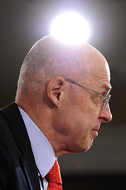 | 圖為美國財政部長保爾森12日在華盛頓舉行的新聞發布會上講話。新華社記者