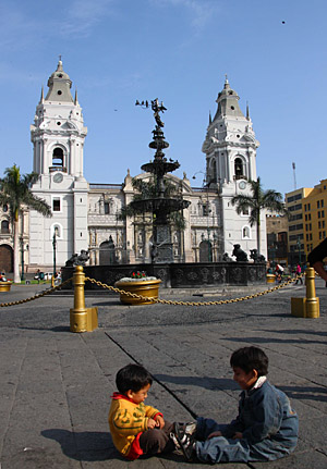 15日,兩名兒童在秘魯首都利馬老城的馬約爾廣場上玩耍。始建于1535年的利馬是秘魯的政治、經濟和文化中心,集中了全國1/4以上的人口,城區分為新城和老城兩部分。其中位于西北部的老城保留了大量殖民地時期的建筑,已被列入“世界文化遺產”。11月22日至23日,亞太經合組織(APEC)第16次領導人非正式會議將在秘魯首都利馬舉行。新華社記者
