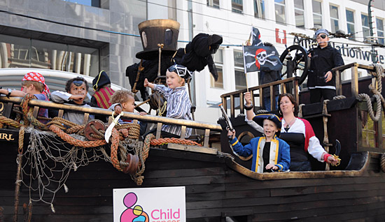 16日,在新西蘭首都惠靈頓,參加游行的“海盜”花車駛過街頭。當天,惠靈頓市政府舉辦一年一度的圣誕大巡游活動,當地民眾紛紛涌上街頭,享受明媚陽光,感受圣誕氣氛。
