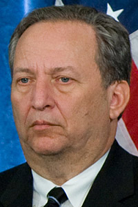 勞倫斯·薩默斯 1954年11月30日出生于康涅狄格州的紐黑文,父母均為賓夕法尼亞大學的經濟學教授,還有兩位親屬曾獲諾貝爾經濟學獎。1982年,他獲得哈佛大學經濟學博士學位。1983年,28歲的薩默斯成為哈佛歷史上最年輕的終身教授。 薩默斯1982年開始涉足公共事務,成為里根政府的白宮經濟顧問委員會成員。1991年,他離開哈佛大學,出任世界銀行副行長兼首席經濟師。1993年,他進入財政部,擔任負責國際事務的副部長。1999年7月,他出任克林頓政府財政部長,曾多次率團訪華。2001年7月1日,薩默斯出任哈佛大學校長,2006年6月辭職。 在今年的美國總統大選中,薩默斯擔任奧巴馬競選班子的經濟顧問。 |