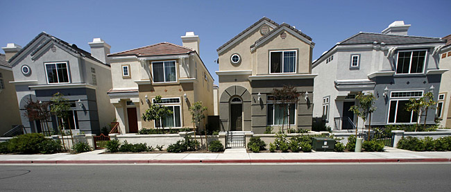 | 美國住房評估網站Zillow.com今年8月份發布報告說,在最近5年內購買房產的美國人中,大約1/3購房者的抵押貸款負債已超過其房產價值。在加利福尼亞州的4個主要城市,90%的房主負債超過房產價值。這是在美國加州埃斯孔迪多拍攝的“買一贈一”的房屋,這些房屋每套價值40萬美元。新華社/路透 |