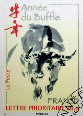 法國郵政總局日前在巴黎舉行了中國牛年生肖紀念郵票首發儀式,用水墨畫演繹的“中國!笔艿搅朔▏]愛好者的熱情追捧。 法國郵政總局此次發行的牛年生肖郵票全套一枚,由旅法華裔藝術家李中耀先生設計。郵票主體是一頭生機勃勃的水墨“中國!,左上角分別用紅色的中文和金色的法文寫著“牛年”字樣。郵票沒有面值,而是直接標明“用于20克以下國內平信”。 據李中耀先生介紹,這是他第三次獨立創作法國郵政總局所發行的中國生肖紀念郵票。此次之所以選擇水墨畫,是因為這種藝術形式非常具有中國特點。李中耀說,他選擇用牛的正面姿態體現他的設計理念,因為這象征著人們對牛年的期望,那就是牛氣沖天。 除了牛年生肖郵票外,法國郵政總局還推出了一套5張牛年生肖郵票的小本票、大型豎開集郵紀念封以及小型橫開集郵紀念封等相關郵品,供集郵愛好者收藏。 2005年,法國郵政總局首次發行了由李中耀先生與法國藝術家合作完成的中國農歷雞年生肖紀念郵票,此后又陸續發行了狗年、豬年和鼠年生肖紀念郵票,吸引了大批集郵愛好者踴躍購買。