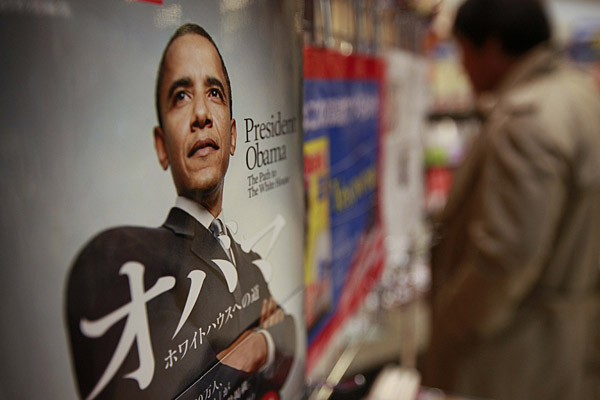 22日,在日本最大的圖書集散地——東京神田書店街,一位讀者在選購美國新任總統奧巴馬的相關圖書。自奧巴馬當選美國總統以來,其傳奇經歷在日本圖書界刮起了一陣旋風,各大書店不約而同地購進與其相關的圖書,銷售一路看漲。