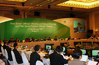 | 圖為16日,2009年亞太經濟合作組織第一次高級官員會議現場。本報記者