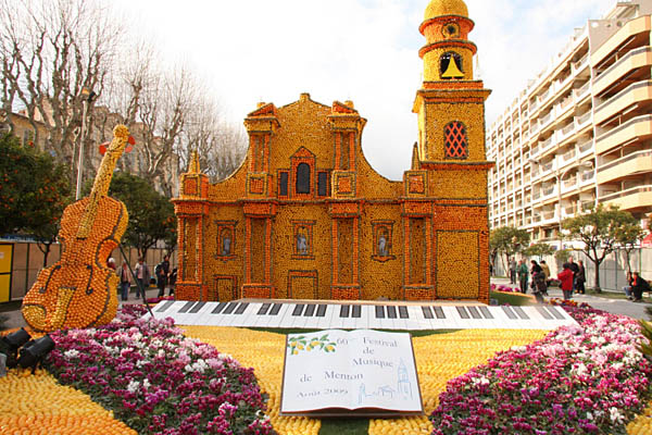 第76屆檸檬節在法國南部小城芒頓舉行,今年的主題是“世界音樂”。檸檬節為期20天,除舉行盛大的花車巡游外還展示用大量檸檬和柑橘搭建成的創意雕塑。新華社/伽瑪