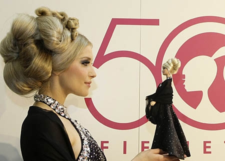 芭比50歲了。 從最初綁著馬尾辮、身穿黑白斑馬紋泳裝的青澀女孩,到如今風情萬種的“千面女郎”,芭比贏得了無數女孩的芳心,F在每秒鐘就有3個芭比娃娃在世界的某一個角落售出。 然而,從誕生之日起,她就充滿了爭議和話題,有人愛之,有人恨之。和麥當娜、瑪麗蓮·夢露一樣,芭比已成為美國的文化符號。